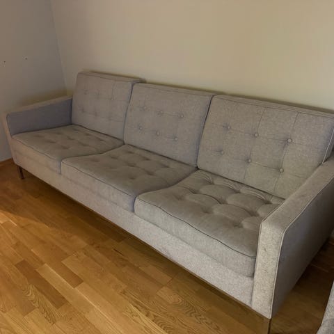 Sjeldent funn til billig penge! Selger en flott Zanotta design sofa i 3 moduler som vi kjøpte brukt i fjor da den er for lav for oss. Den er utrolig stilig, men for de som liker seg litt lavt nede mot gulvet. Nypris på denne sofaen lå på rundt 100 000,- da den ble kjøpt ifølge selger, og tilsvarende modeller (tror det er en versjon av Kilt). Det er en liten rift nederst mot gulvet på to av modulene som jeg ikke har prøvd å fikse.