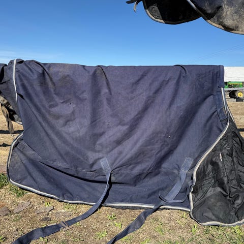 Godt brukt Horseware Amigo Plus dekken 250 gr. Str 145. Mangler en spenne i fronten, halsen mangler et borrelåsfeste. Reparert i flere omganger. 600 kr. Lånt bilde, se neste bilde.
