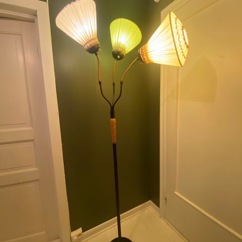 En bryter funker ikke. Selges uten skjermer. Sort metall og messing.