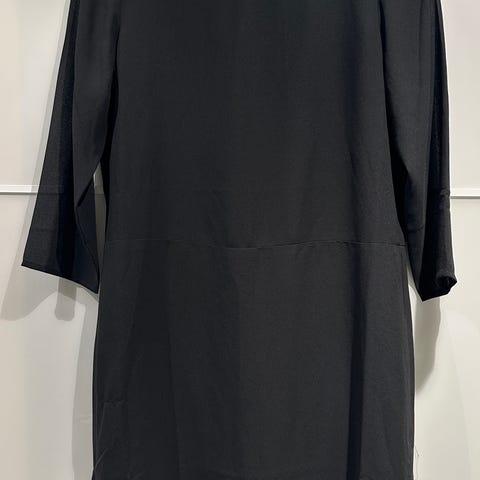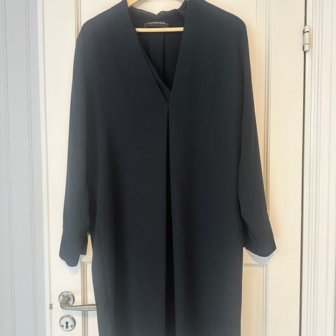 Dette er en lekker kjole fra Malene Birger i str 40, men går også til 38 da den er løs og rett i fasongen. Har lagt ved litt bilder som viser at den er lett og style, og derfor har mange bruksområder. En god flerbrukskjole enten med pumps eller tøffe støveletter. Nypris 2999.-