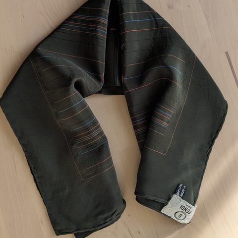 100 % naturlig silkeskjerf fra jimmy choo dette er et perlehvitt med beige inskripsjoner så lett å kombinere, kommer med etiketten. aldri brukt. du ser den opprinnelige prisen, men jeg halverer til fordel for noe jeg virkelig ville brukt selv, så det er virkelig en god pris for et 100 % naturlig silkeskjerf 🫶🏻