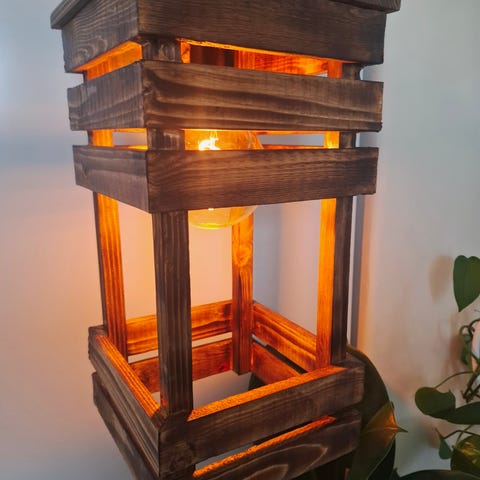 unik taklampe laget av tre