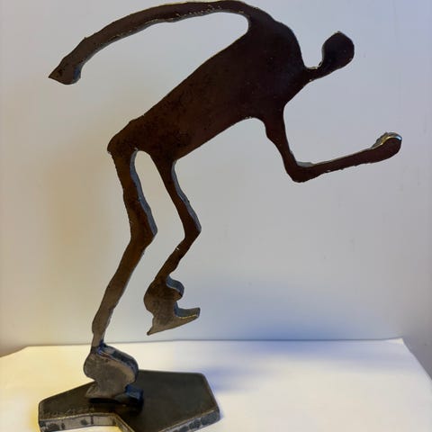 Skulptur av Fakkelmannen fra Lillehammer-OL i 1994. Har også piktogrammene for skøyteløp og kunstløp til salgs.