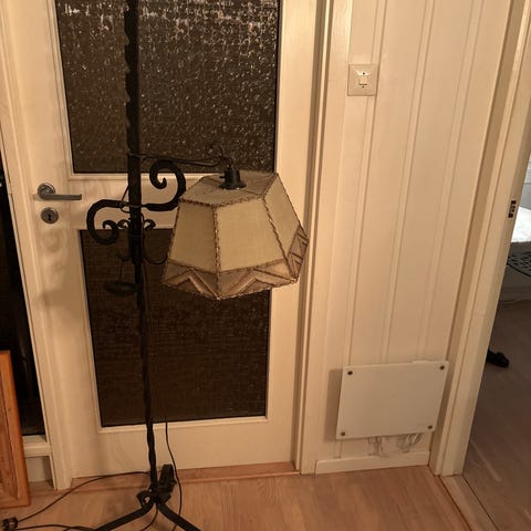 Flott, solid, antikk stålampe i smijern.