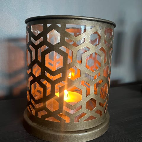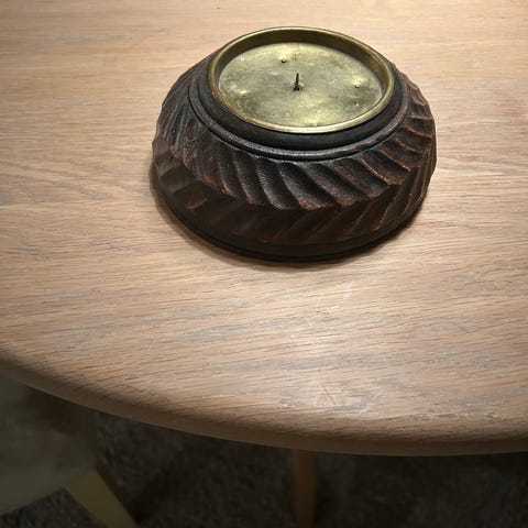 Lysestake fra Lama for kubbe- eller kulelys laget av resirkulert tre med rustikt utseende.