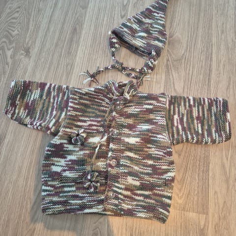Helt nydelig sett strikket på spesjelt bestilling. Som ny 68/74 størrelse