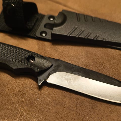 Usikker på hva slags merke den ene kniven uten slire er men resten er gamle mora kniver 3 av dem er med treskaft. Knivene trenger én overhaling men vet noen samler på sånne kniver også.