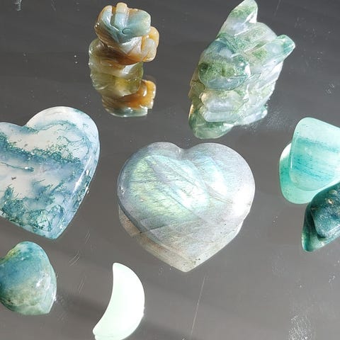 Nesten 2 kg, 14 stk, selges samlet, alle er i grei stand. Noen har enkelte riper eller ujevn farge. Størrelse varierer fra ca 5 × 5 cm til 8 × 7 cm.