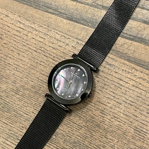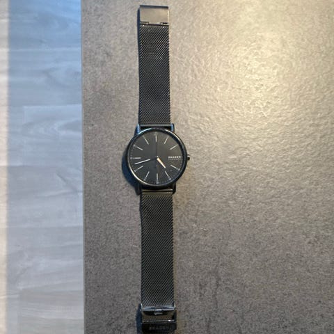Den er gammel så litt misfarging på remmen, har ikke prøvd å få det vekk. Litt slitt rundt kanten på selve urskiven.