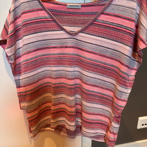 Topp i flerfarget design for kvinner, størrelse L. Denne toppen har et unikt mønster i flere farger og er egnet for ulike anledninger. Passer godt til både hverdagsbruk og mer formelle sammenkomster.