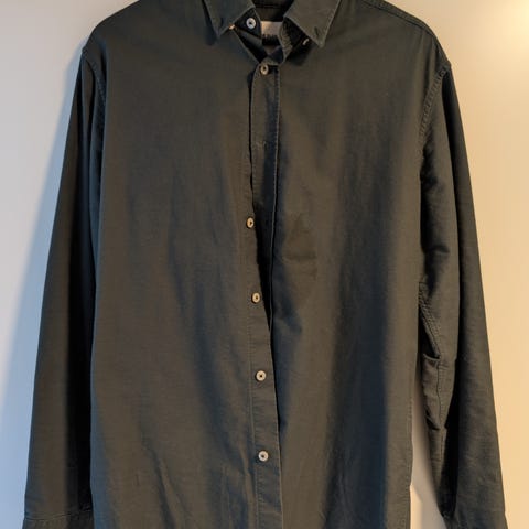 Svært pent brukt, myk og delikat bomullsskjorte fra Europann, Saint Tropez. Herrestr. Small, mosegrønn/brun. Ustrøket, men hel og pen.