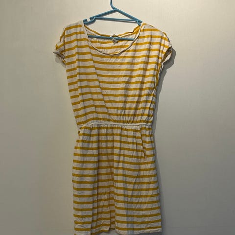 Fin stripete kjole selges. Veldig fin, men dessverre litt for liten. Vært en liten rift i under skjørtet som er sydd, synes ikke når kjolen er på.