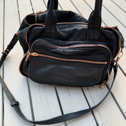 Jeg vurderer å selge en pent brukt Alexander Wang håndveske med tøft håndtak som du også kan bruke på skulderen/crossbody. Årets høstfarge som passer til stort sett alt 😍 Dustbag følger selvsagt med.