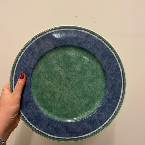 Seks sjeldne, eldre asjetter fra Stavanger flint. 15 cm i diameter. Hele og pene. En av asjettene har en beige malingsprikk på kanten(har ikke forsøkt å fjerne den). Selges samlet.