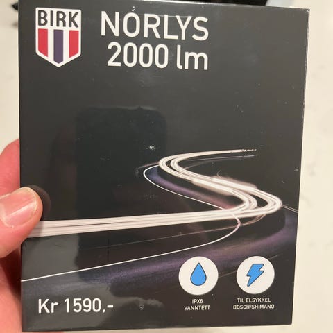 Birk sport hodelykt norlys nb09 1000 lumen. Sykkel, ski og multisportlykt. Oppladbart batteri koblet med ledning for å kunne ha batteriet på innsiden av jakken i kulden. Feste til hjelm/styre. Følger med reim til hodet som fulgte med + en fra birk sport jeg har kjøpt utenom som er mer egnet for høy aktivitet.