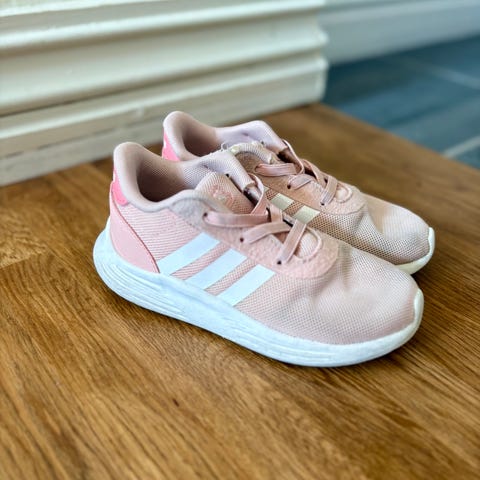 Adidas joggesko etter tvillinger. Masse bruk igjen, litt slitasje i det rosa stoffet i kanten mot leggen. Se bilde.