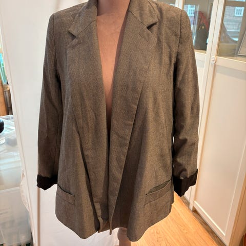 Dette er en vakker jakke i en dus blå med mange detaljer. Den er tykk og god i stoffet med sølvtråder (kommer ikke helt frem på bildene). Ny og ubrukt. Nypris 2500.-