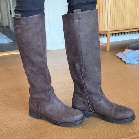 Jeg selger støvlettene (eller hva det nå heter) for samboern min. Hun har hatt dem i 3-4 år og brukt dem en gang da de var nye. De var visst litt for små.