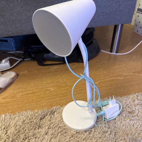 Ikea orgel bordlampe med snor og ny hvit skjerm med kobber farget innside