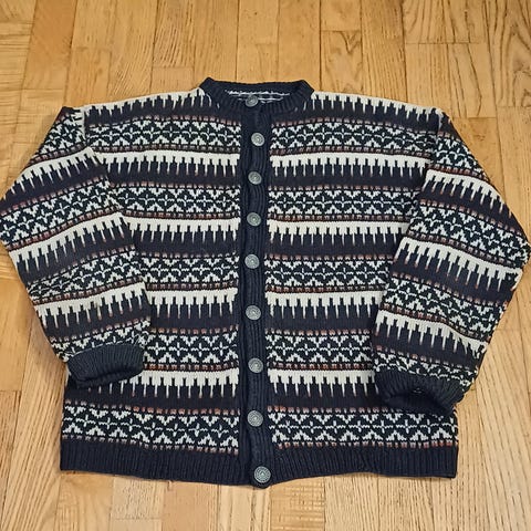 Hjemmestrikket kofte. I god stand, veldig lite brukt. Fargen på bilde 1&2 er mest riktig.