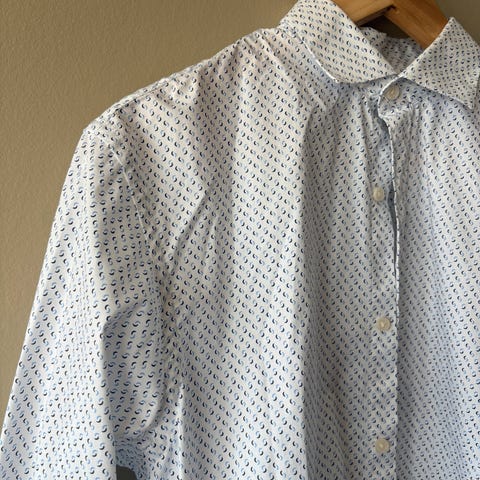 Fin, mørkeblå bomullsskjorte.