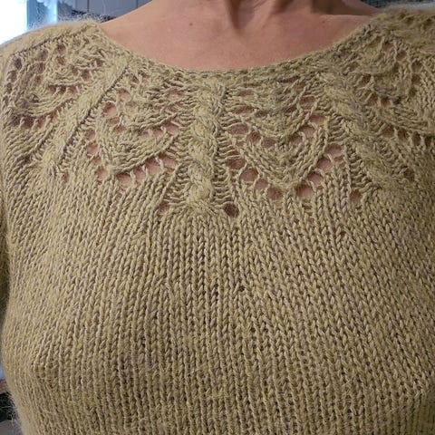 Innhold: 53% akryl, 25% polyester, 11% mohair og 11% ull. Deilig, myk og god genser.
