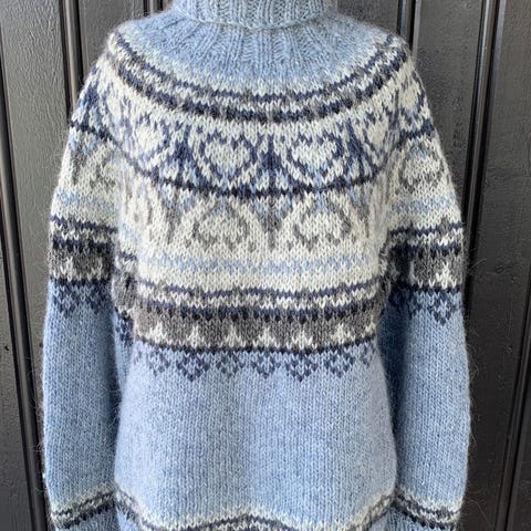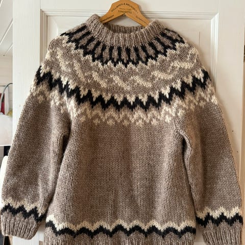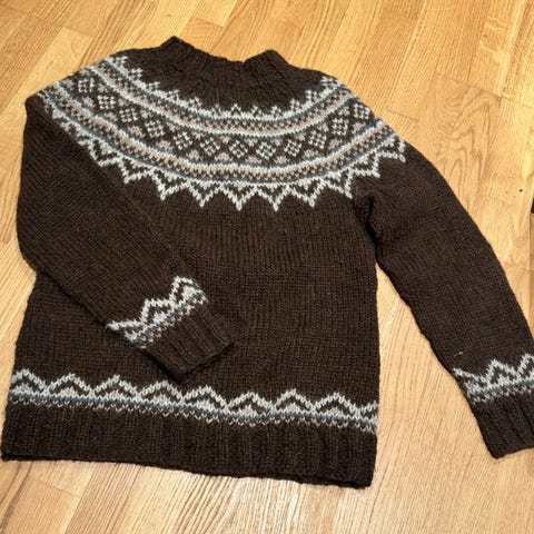 Selger en ubrukt strikket Islandsgenser som jeg har fått i gave.