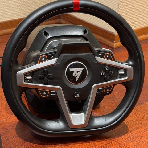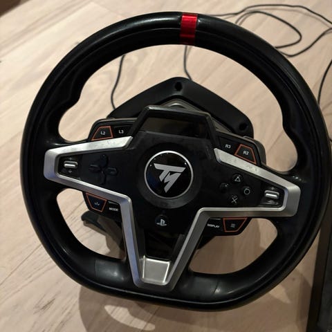 Grunnen til dette er at jeg har ikke plass til denne og trenger den ikke, jeg håper noen er interessert fordi den er utrolig bra og den roterer 360 grader rundt, den har gir og alle knapper som en konsoll. Godt grep på rattet og feste under rattet for å feste på et bord med skru funksjon. Alle deler hører med b.l.a et brett med 3 pedaler en for gass, en bremse og en kløtsj som kobles til play station.