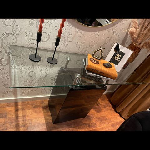 Coruna glass konsollbord fra Bohus, sokkel i marmor/ crome 135x46