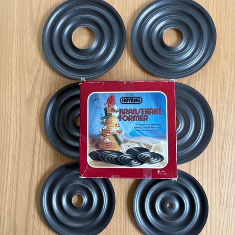 Kransekakeformer, 5 enheter gir 15 ringer med oppskrift