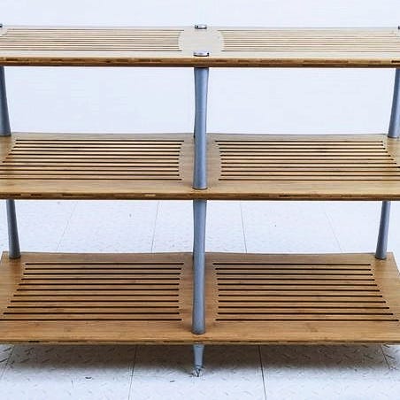 Strøkent - det er såvidt mulig å skimte et par hårstriper på en av topphyllene - men de ser nye ut. Etter min mening det best konstruerte stålracket i historien som koster mindre enn en ordentlig bil. Kjøpte det ene i 2000, det har vært i bruk siden. Det andre klarte jeg å spore opp for et par år siden, da antallet komponenter vokste. Nå er antallet komponenter på et minimum. (Selges uten Q-dampers. En eventuell kjøper får svartlakkerte messingføtter i stedet.) Prisen gjelder en del, kjøp begge for 16000. Sårt å la dem gå, men livet er kort.