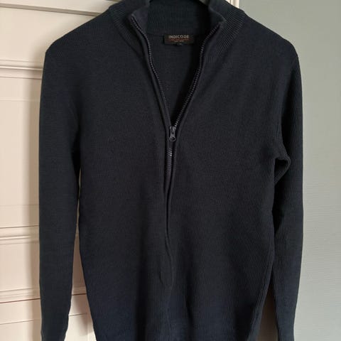 Pent brukt jakke med glidelås. Den er blå farget og flott jakke. Fargen til jakka er ganske fin, men på bildene ser ikke så fine ut, men jakka er veldig fin og flott farge. Flott ensfarget jakke. Fargen er fin som det skal være.