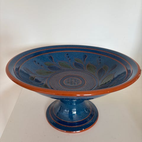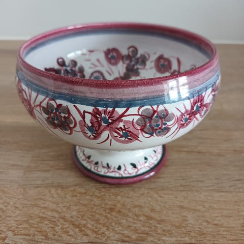 Flott keramikk skål på stett. Dekorativt mønster. Fin som fruktskål ea.