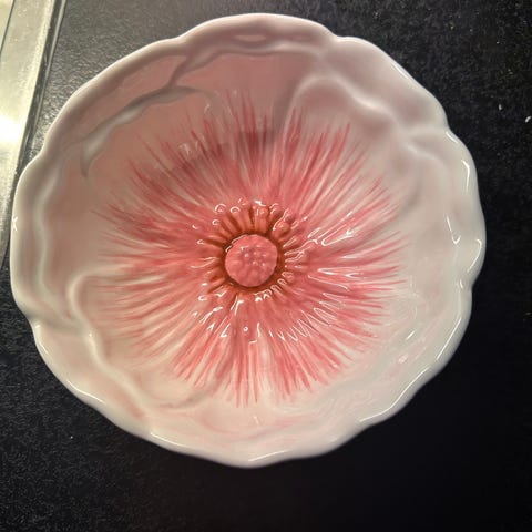 1 fin liten skål m/lokk H. 9 cm, B. m/hank 9,5 cm, veier 275 gram.8-kantet 6 cm