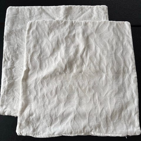 Selger flere pynteputetrekk. Trekkene på 50*50 koster 30kr og de to store på 65*65 koster 50. Så er det to puter med trekk på der den grønnlige koster 40 og den andre 60. Det er en rosa og en grå innerpute, de er noe slappe i fisken, men kan gis med gratis ved kjøp av trekk. Alt selges samlet for 300kr.