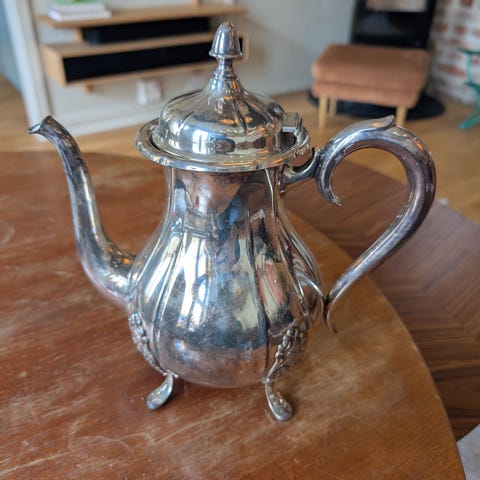 Den er beregnet til bruk på ovn. Pånittet hank. Kjelen er fabrikkprodusert. Den er presset ut av tynne plater, ikke hamret slik kobberslagerne gjorde det.