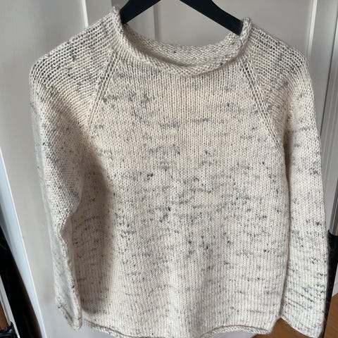 Varm og god genser fra h&m i alpaca blend. Grå farge. Genseren er ganske stor og lang, og kan nesten brukes som kjole. Størrelse M, men vil fint passe L også.