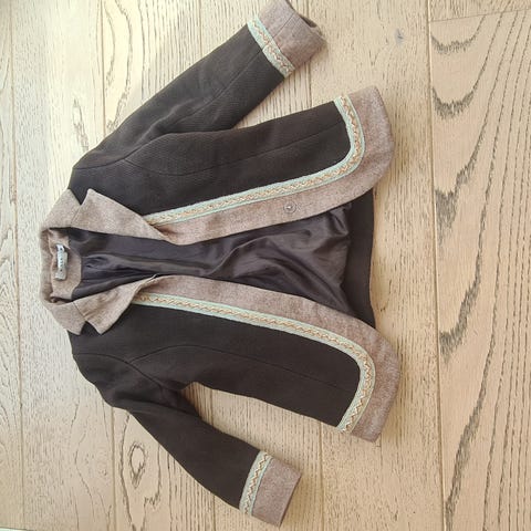 Kjempefin mørkeblå ulljakke med avtagbar hette fra COS i 80% ull. Perfekt over pentøyet til gutt eller jente.