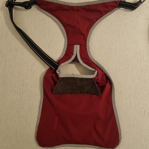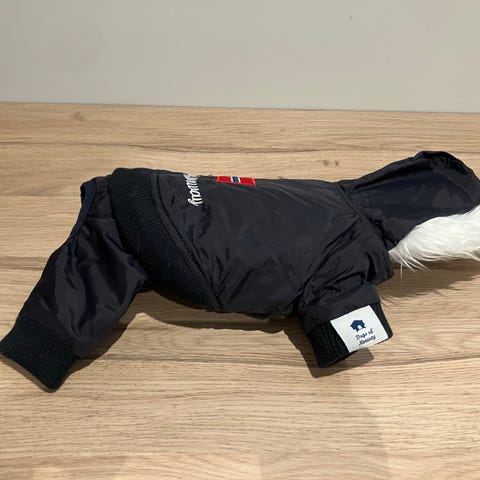 Super fin dress helt ny med lappen på. Skikkelig kvalitet fra Bionic mål: ca 45 over ryggen 25 cm nedover. Passer til medium hunder. Jeg har ShihTzu, og min drukner i denne 🤪 Den tåler også godt med vann, og kan helt fint brukes som regndress i tillegg. kjøpte på salg med håp at den skulle passe min gamle hund. Siden den ikke gjorde det har den ligget i skapet mitt altfor lenge.