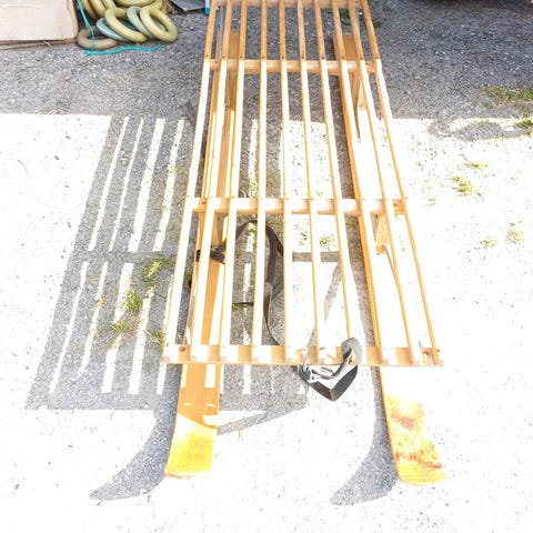 støtteski for ikke å velte, pulkdrag med sele, skøyter, snoblades og div belter og støtteanordninger.