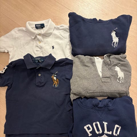 Grå hettegenser og blå pique skjorte fra Ralph Lauren str. 2 år.