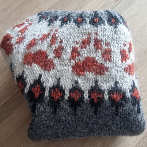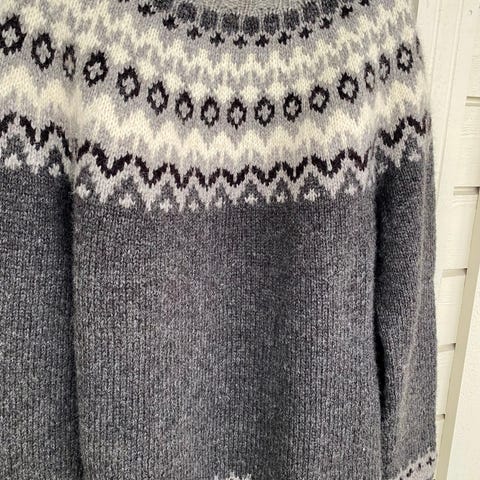 Helt ny, hjemmestrikket ullgenser. Strikket i tykt islandsk ullgarn: Alofosslopi. Mønster av Linka Neumann.