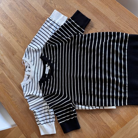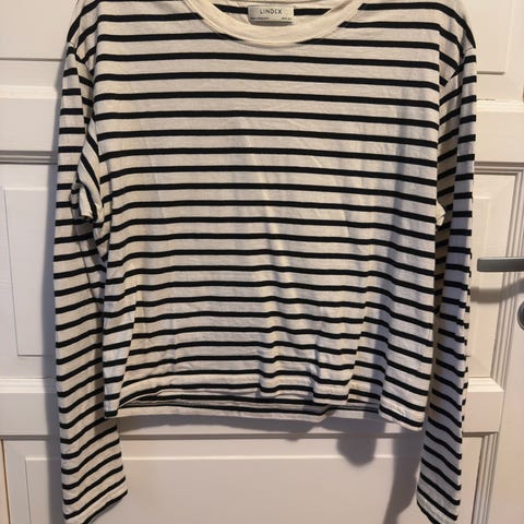 Stripet, svart og hvit jerseytopp uten skuldre med brettet hals og korte ermer for å få en moderne sommerstil. Materialet er laget av miljøvennlig viskose fra EcoVero™, et mer bærekraftig alternativ sammenlignet med vanlig viskose.