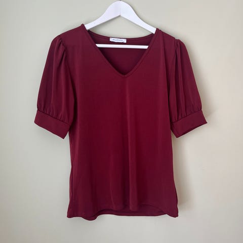 En superfin partytopp! Den har glatt stoff og små pynteknapper foran.