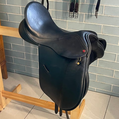 Fantastisk god sprangsal med dypt sete og god støtte. Pent brukt, litt bruksmerker men ingen skader. Stigbøyler, stigbøylereimer og originalt saltrekk kan medfølge.
