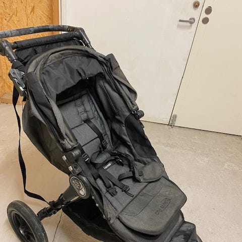 Vognen er pent bruk etter 1 barn. Kjøp i 2021år. Hjulene er punkterings frie. Mye plass under vognen. Følger med både regntrekk og myggnett. Må hentes.