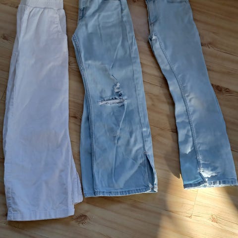 Denimbuksene: 1 m strikk i buksebeina (Gina) og 1 m splitt og flare (Zara). 9-10 år