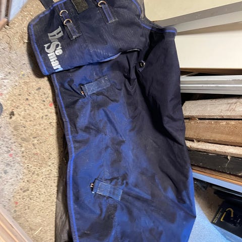 Det ble kjøpt på Finn som lite brukt. Det ble for lite til min hest. Framstår som nytt. Den forrige eieren hadde bare brukt det et par ganger. Jeg har bare prøvd det på hesten min. 400g tykkelse, lett vannavstøtende.