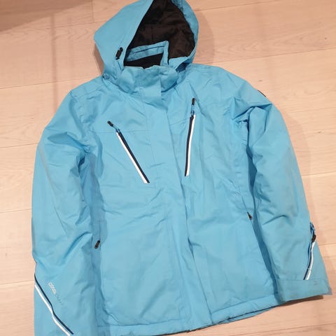 Snøskjørt, lomme for heiskort i armen. Avtagbar hette som har skjerm foran. Ekstra lomme innvendig.