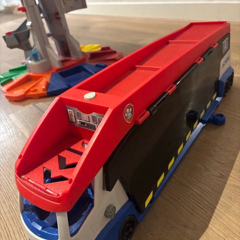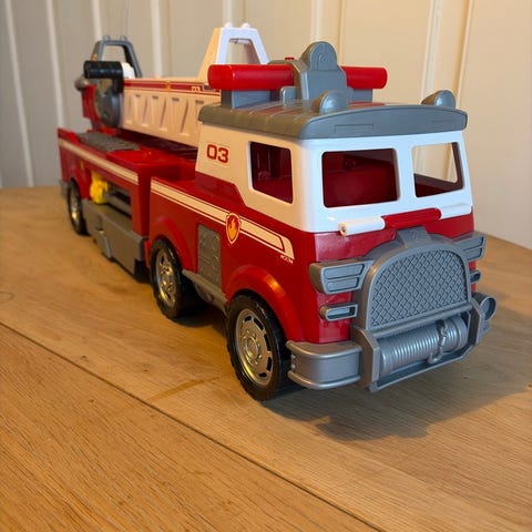 En stor brannbil fra Paw Patrol med lyd, lys, nedfellbar stee og masse morsomme funksjoner. Marshal stor Brann bil med lyd og lys. Alt fungerer som den skal. Mangler en bal.
